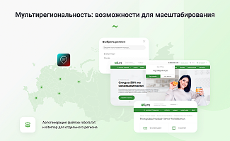 - Возможность организовать мультирегиональность на одном домене или неограниченном числе поддоменов;
