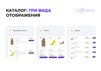 2. Три вида отображения товаров: плитка, подробный список, список |