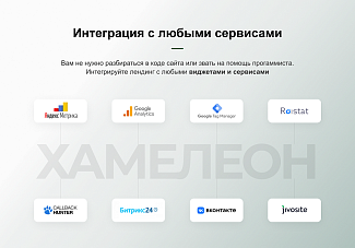 ИНТЕГРАЦИЯ С ЛЮБЫМИ СЕРВИСАМИ ЗА ПАРУ КЛИКОВ:Вам не нужно разбираться в коде сайта или звать на помощь программиста. Интегрируйте лендинг с любыми виджетами и сервисами.